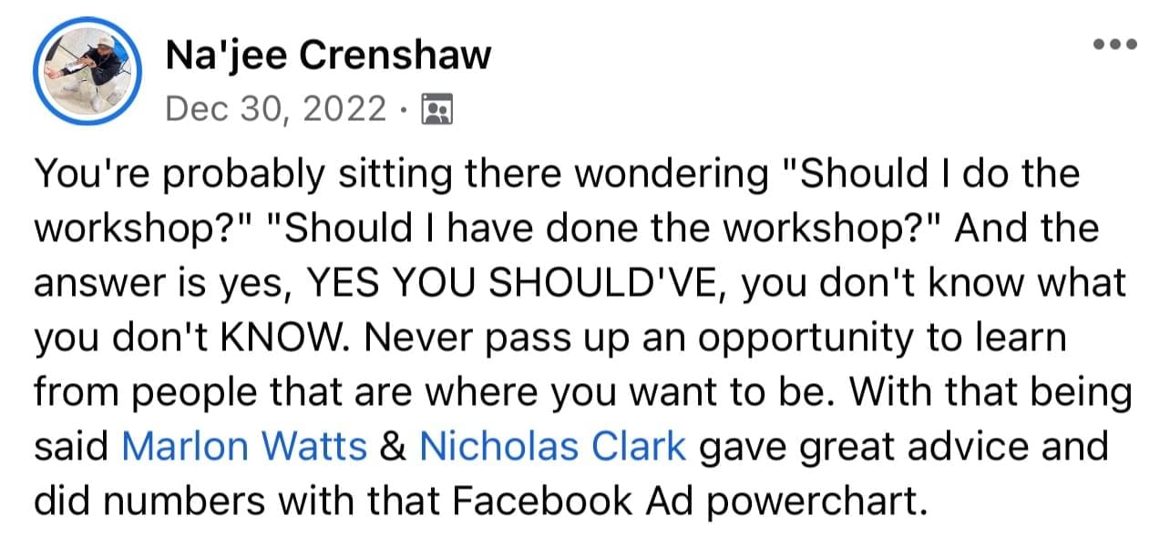 If you feel like you’ve been searching in the dark for the right way forward, this workshop will put you on the path to success. To be the best, learn from the best.